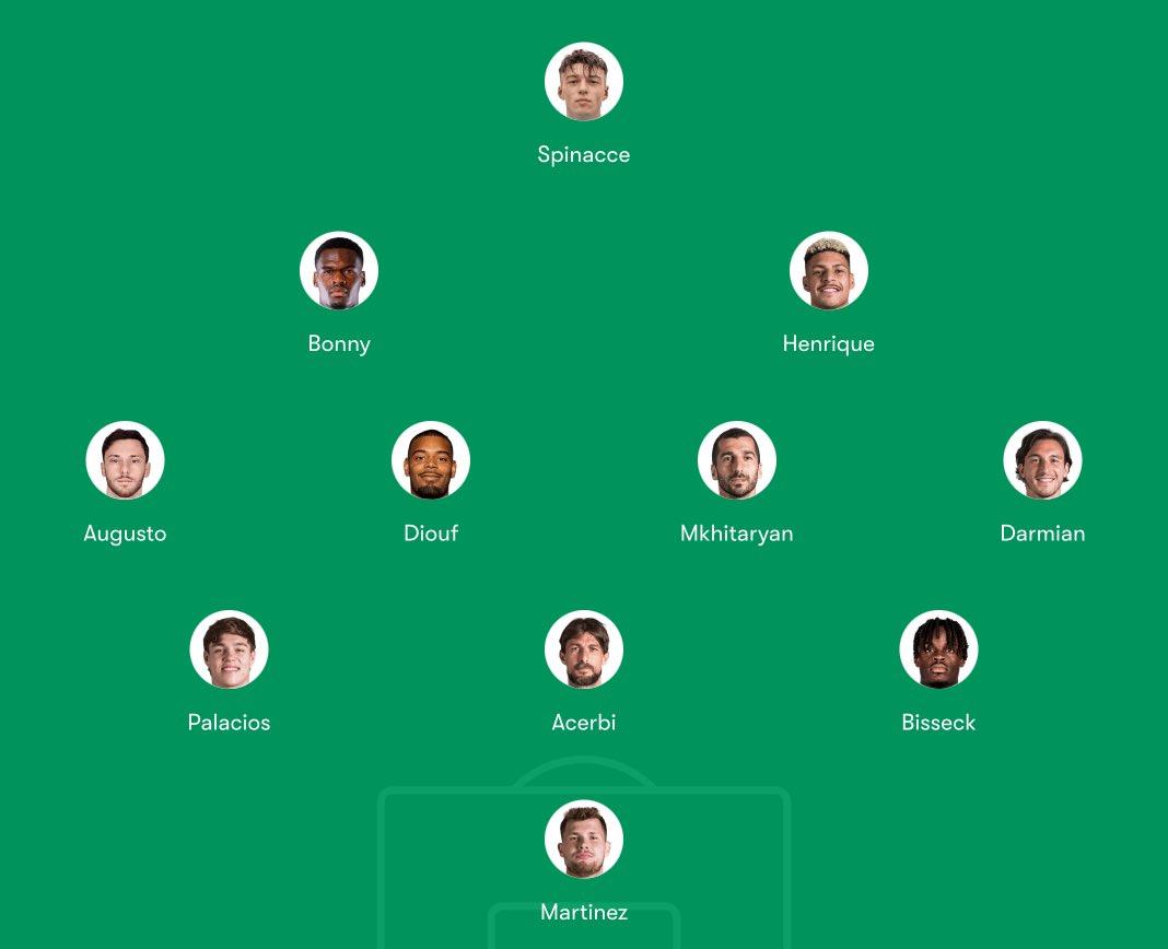 甚至罗体还排出了国米4321阵型下的首发阵容,巴斯托尼和阿坎吉坐镇后防中路,迪马尔科和邓弗里斯分列左右,三中场依次为巴雷拉、恰尔汗奥卢和苏西奇,前腰位置上有图拉姆、博尼、弗拉泰西、姆希塔良等人,中锋则是劳塔罗和皮奥两人轮换。这个阵型攻防实力会更均衡一些,可以最大化发挥阵容实力。